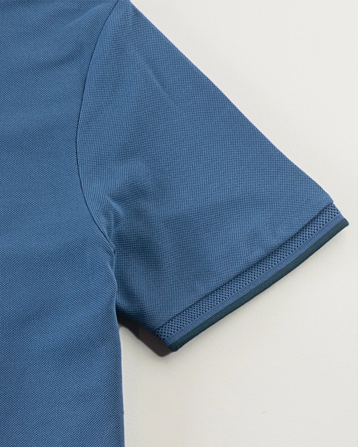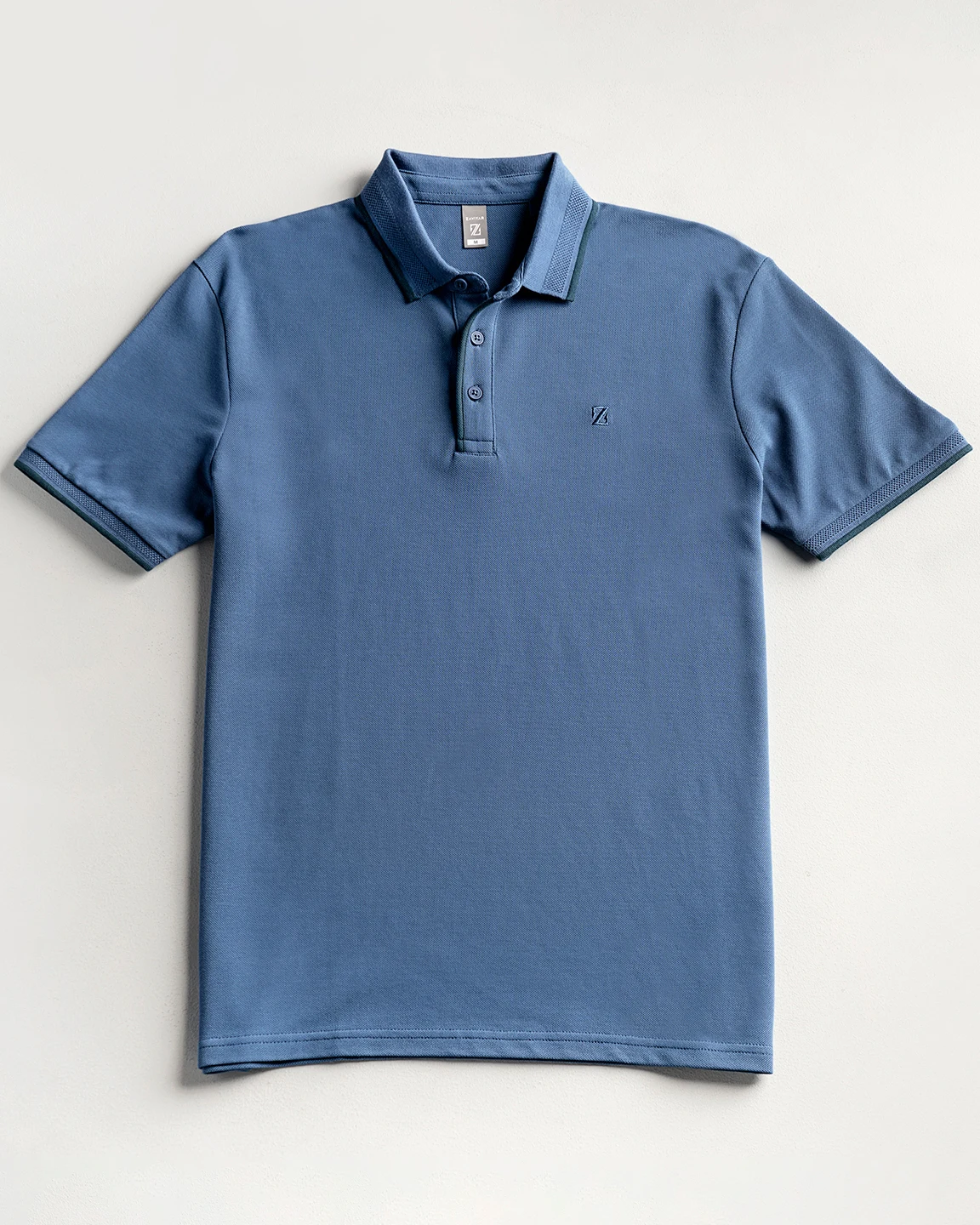 Product Description: Polo shirt by Zaviyar. Subtle contrast tipping along the collar, button placket, and sleeves, half-length sleeves with ribbed cuff, and chest embroidery logo detailing.