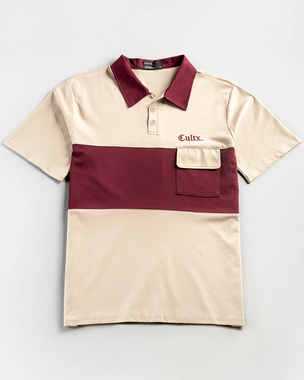 Product Description: Polo shirt by Occult. Structured polo collar with a 3-button placket, half-length sleeves, a functional patch pocket with a flap on the chest, and a branded embroidery logo detailing. Crafted with cotton mix fabric.