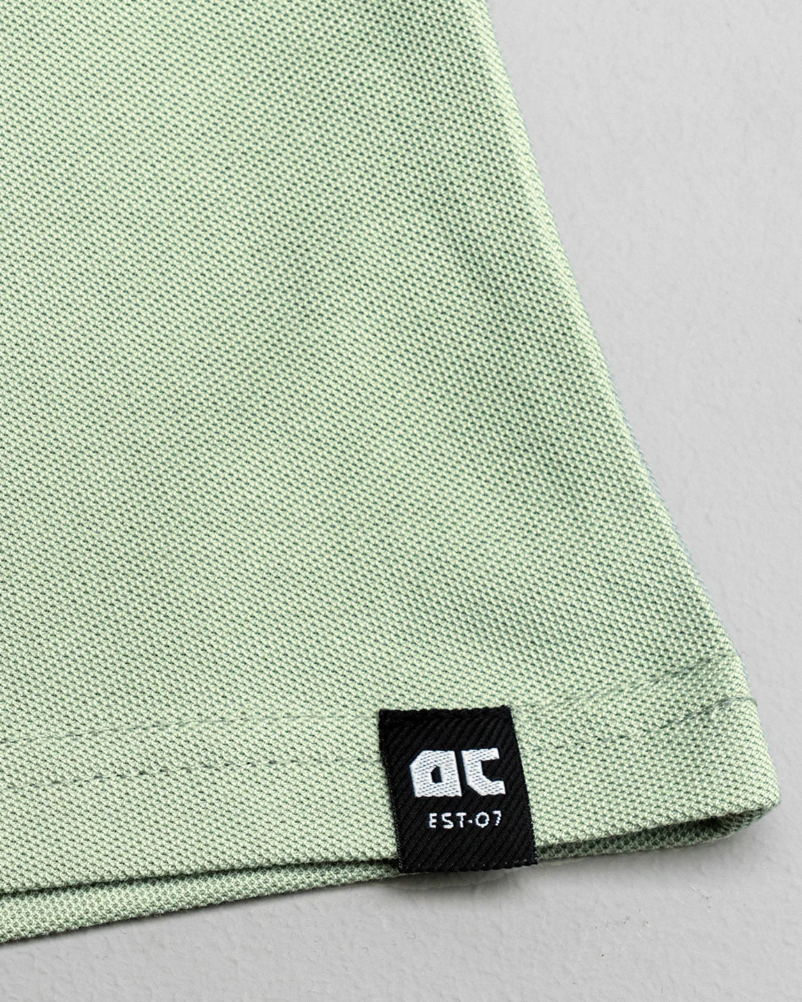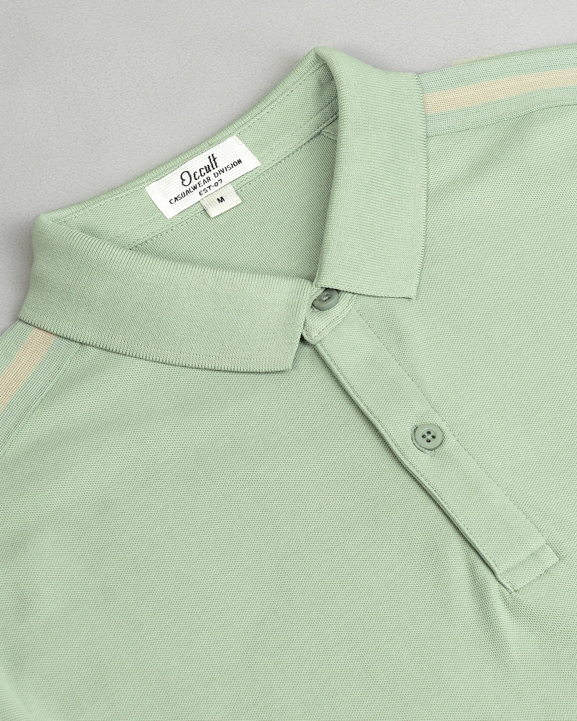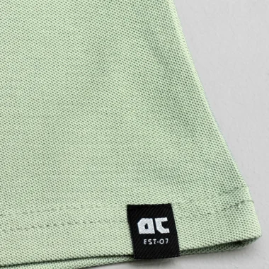 Product Description : Knit Polo. Short sleeve rib cuff, Shoulder line has a decorative twill tape design and button placket on rib. On chest has a patch details, half moon back yoke, straight hem, DTM Button.