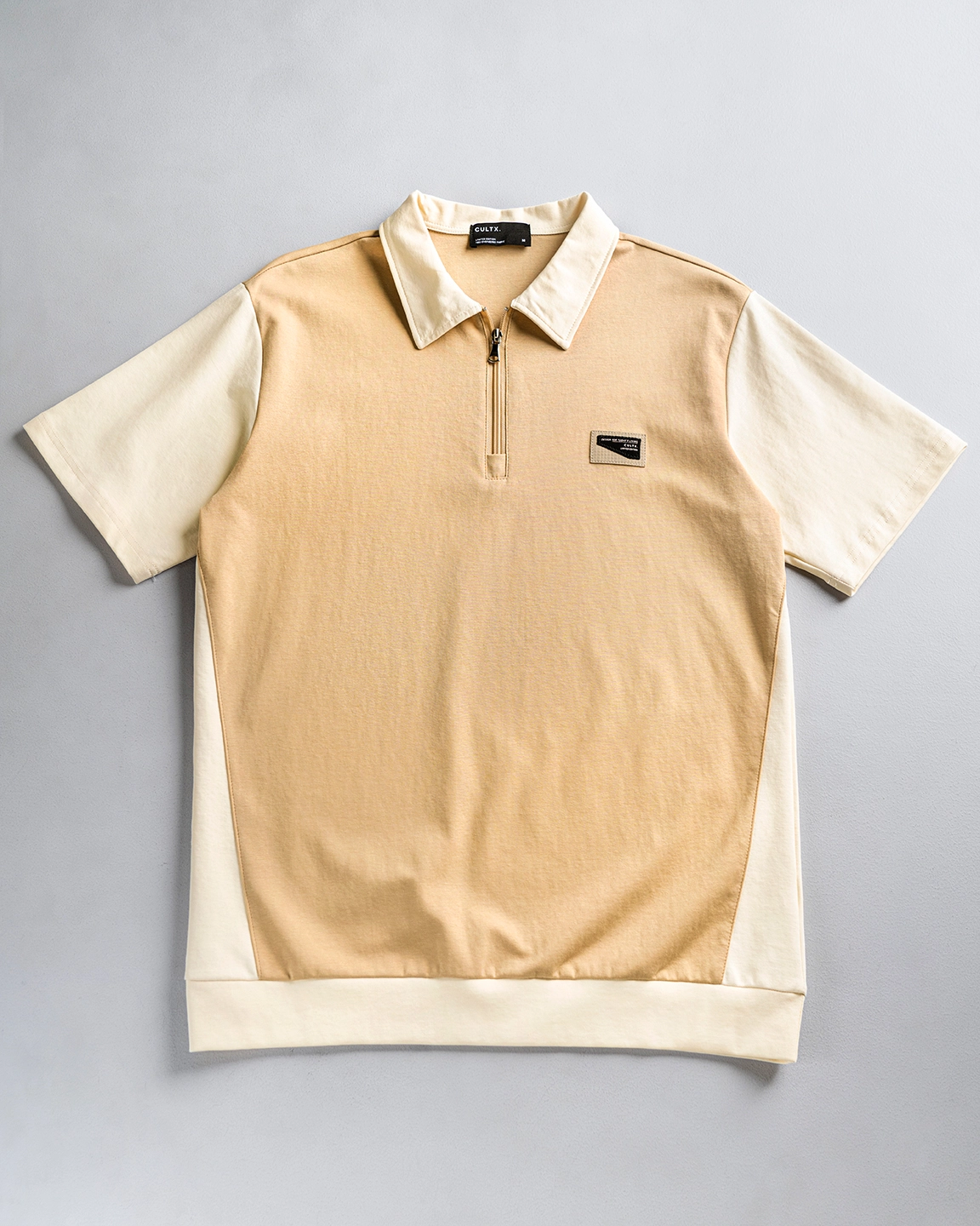 Product Description: Textured polo shirt. Structured polo collar with half-zip front closure, half-length sleeves, and a branded chest logo detailing. Crafted with airtech double-sided fabric.