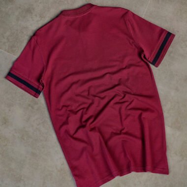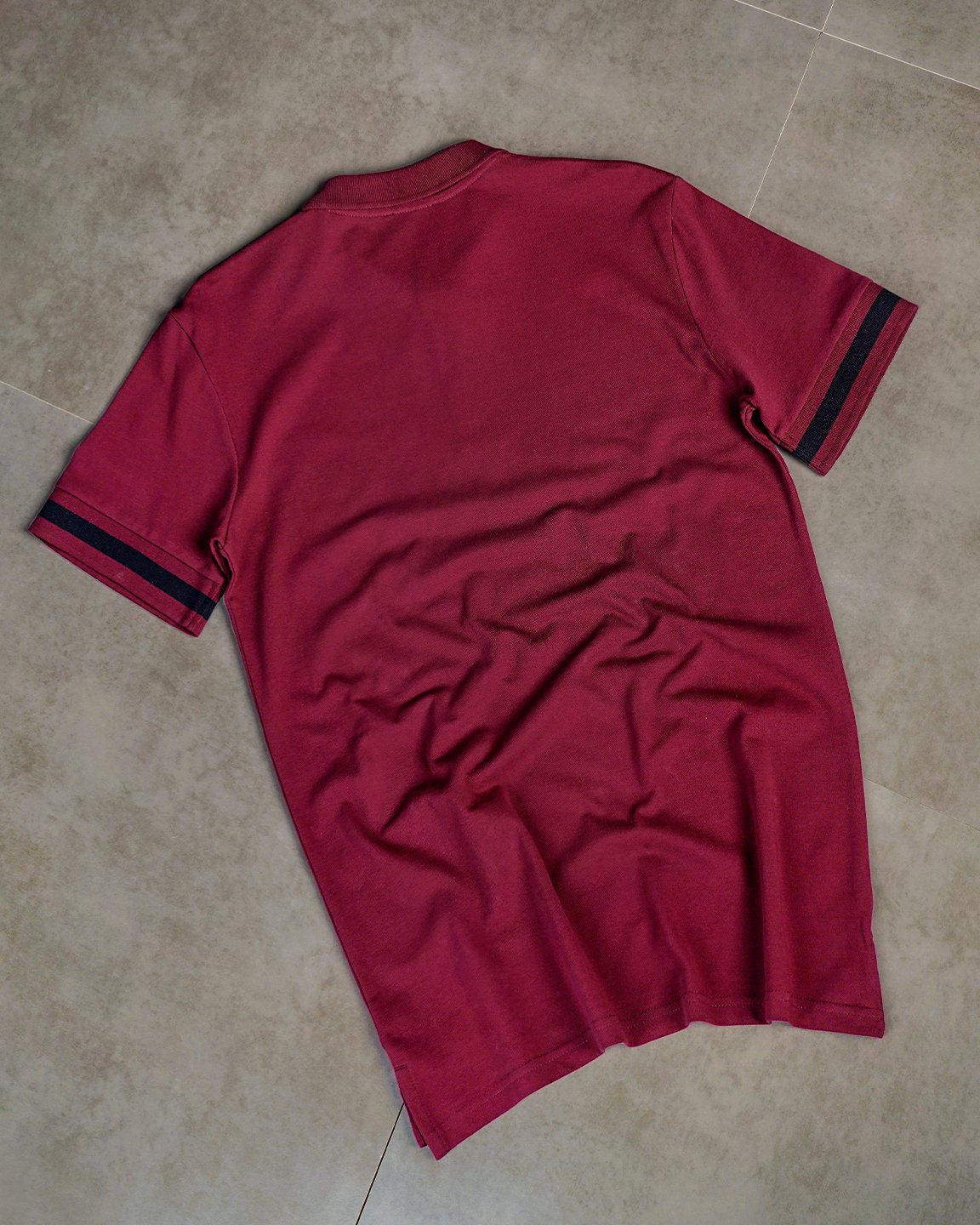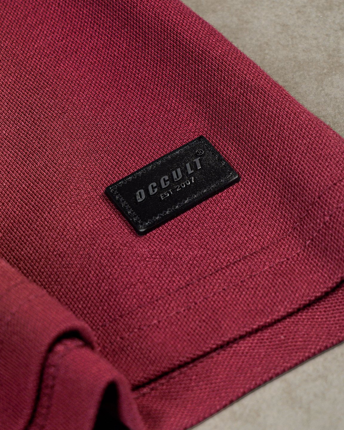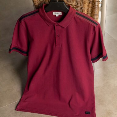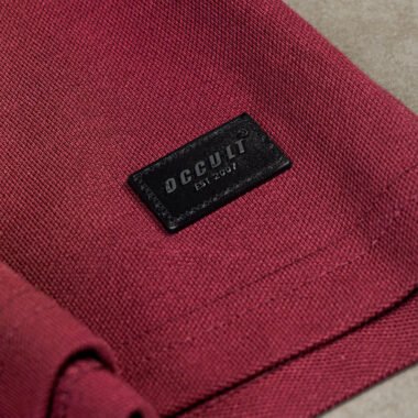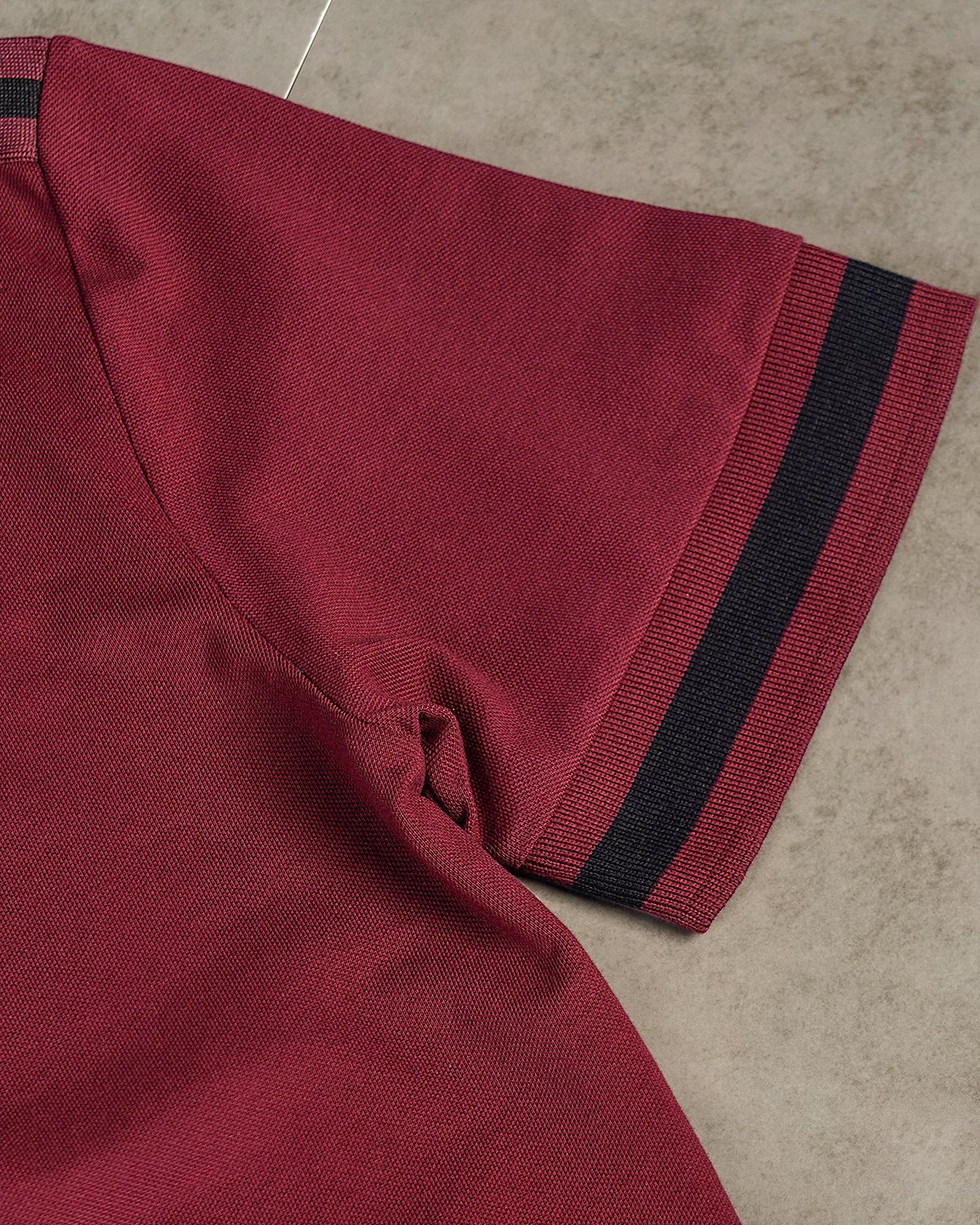 Product Description: Knit Polo. Short sleeve rib cuff, Shoulder line has a decorative twill tape design and button placket on rib. On bottom has a patch details, straight hem, DTM Button.
