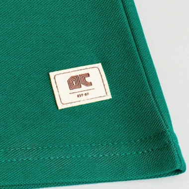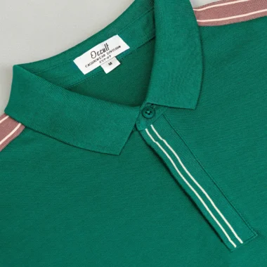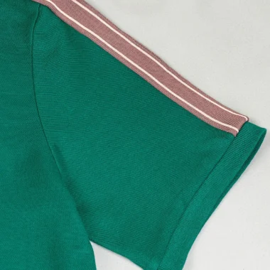 Product Description : Knit Polo. Short sleeve rib cuff, Shoulder line has a decorative twill tape design and button placket on rib. On chest has a patch details, half moon back yoke, straight hem, DTM Button.