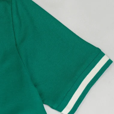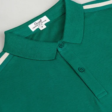 Product Description : Knit Polo. Short sleeve rib cuff, Shoulder line has a decorative twill tape design and button placket on rib. On chest has a patch details, half moon back yoke, straight hem, DTM Button.
