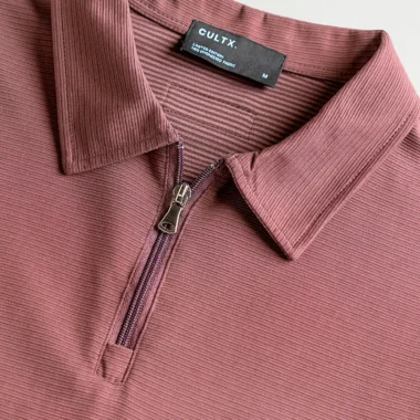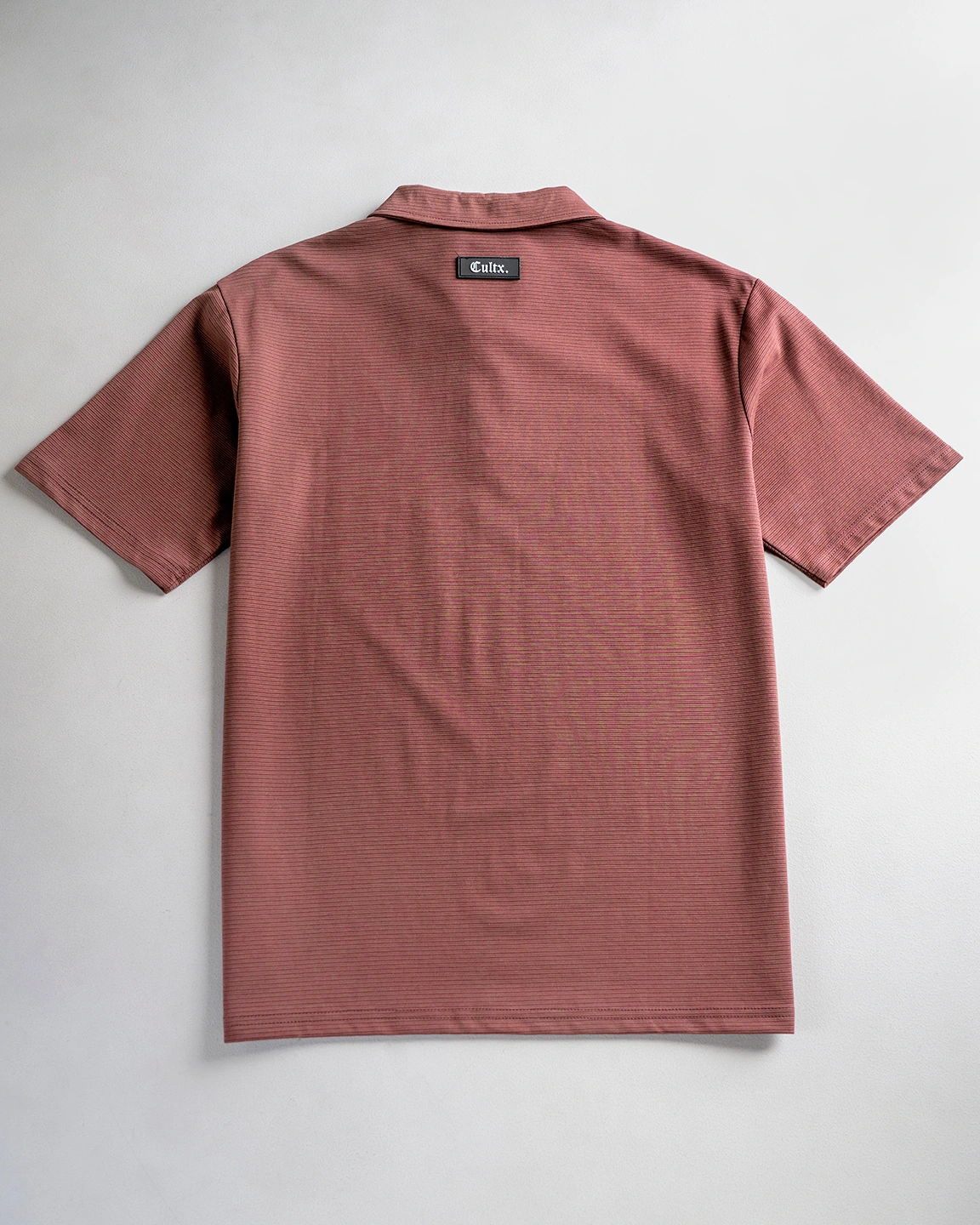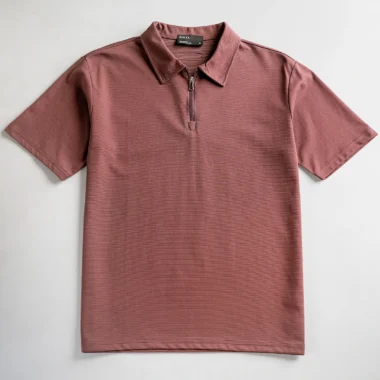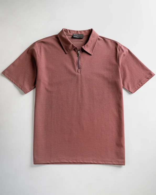 Product Description: Textured polo shirt. Structured polo collar with half-zip front closure, half-length sleeves, and a branded logo detailing below the collar on the backside. Crafted with luxury cotton mix fabric.