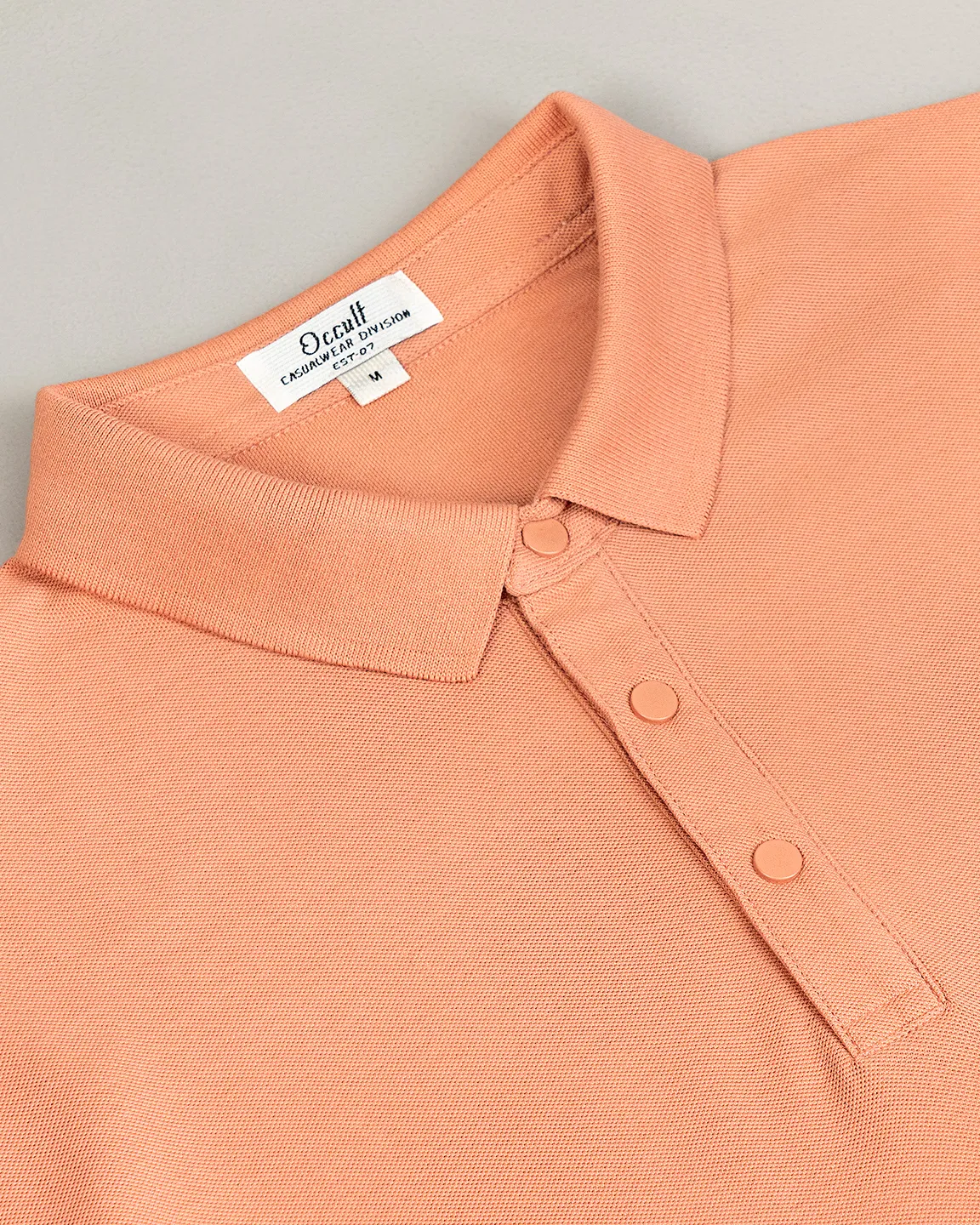 Product Description : Knit Polo. Short sleeve rib cuff, Shoulder line has a decorative twill tape design and button placket on rib. On chest has a patch details, half moon back yoke, straight hem, DTM Button.