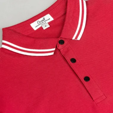 Product Description : Knit Polo. Short sleeve rib cuff, Shoulder line has a decorative twill tape design and button placket on rib. On chest has a patch details, half moon back yoke, straight hem, DTM Button.
