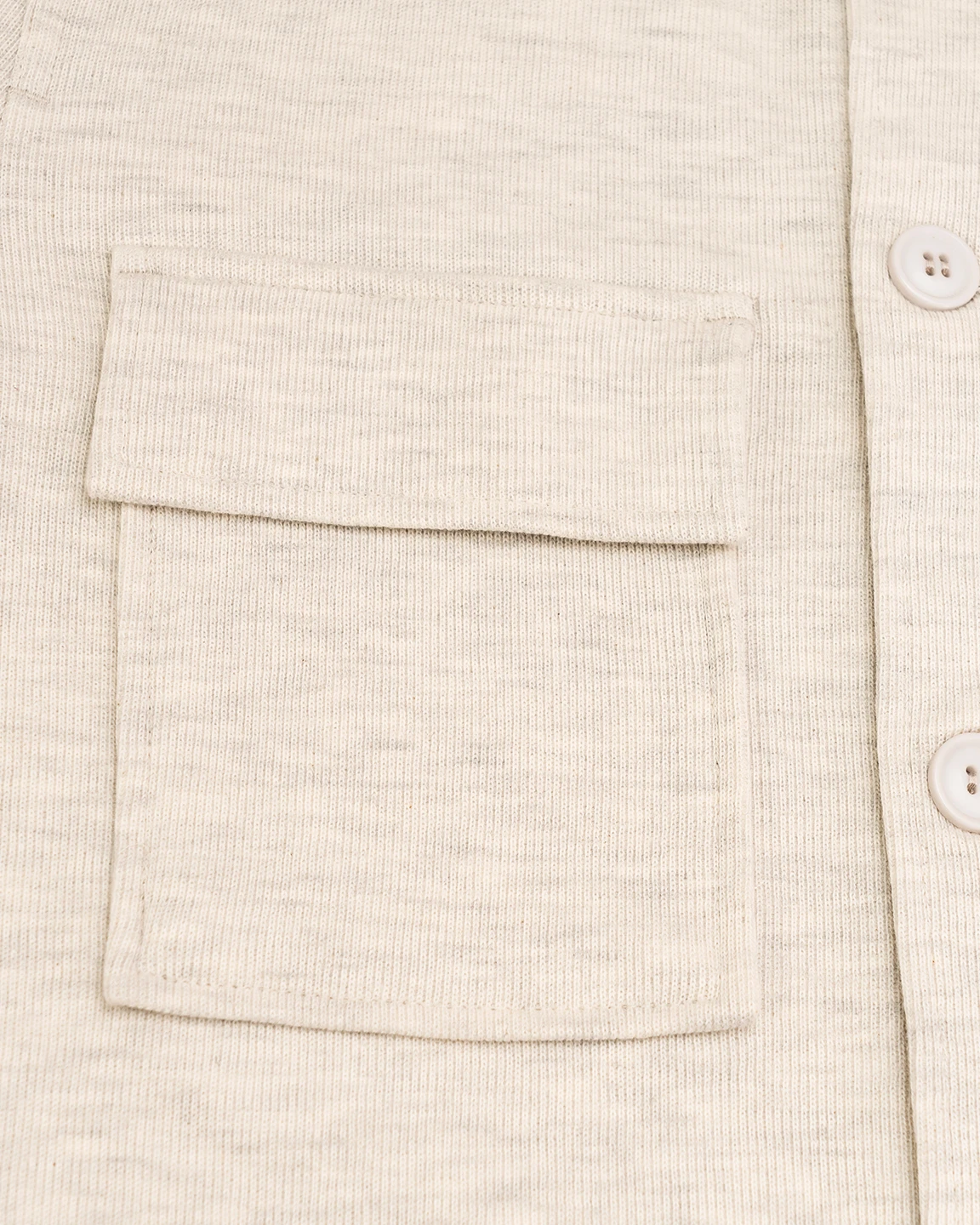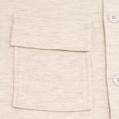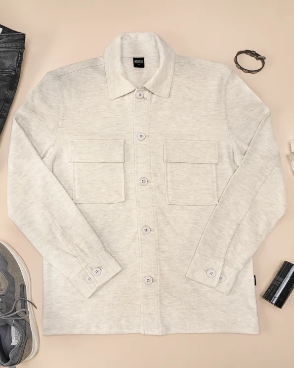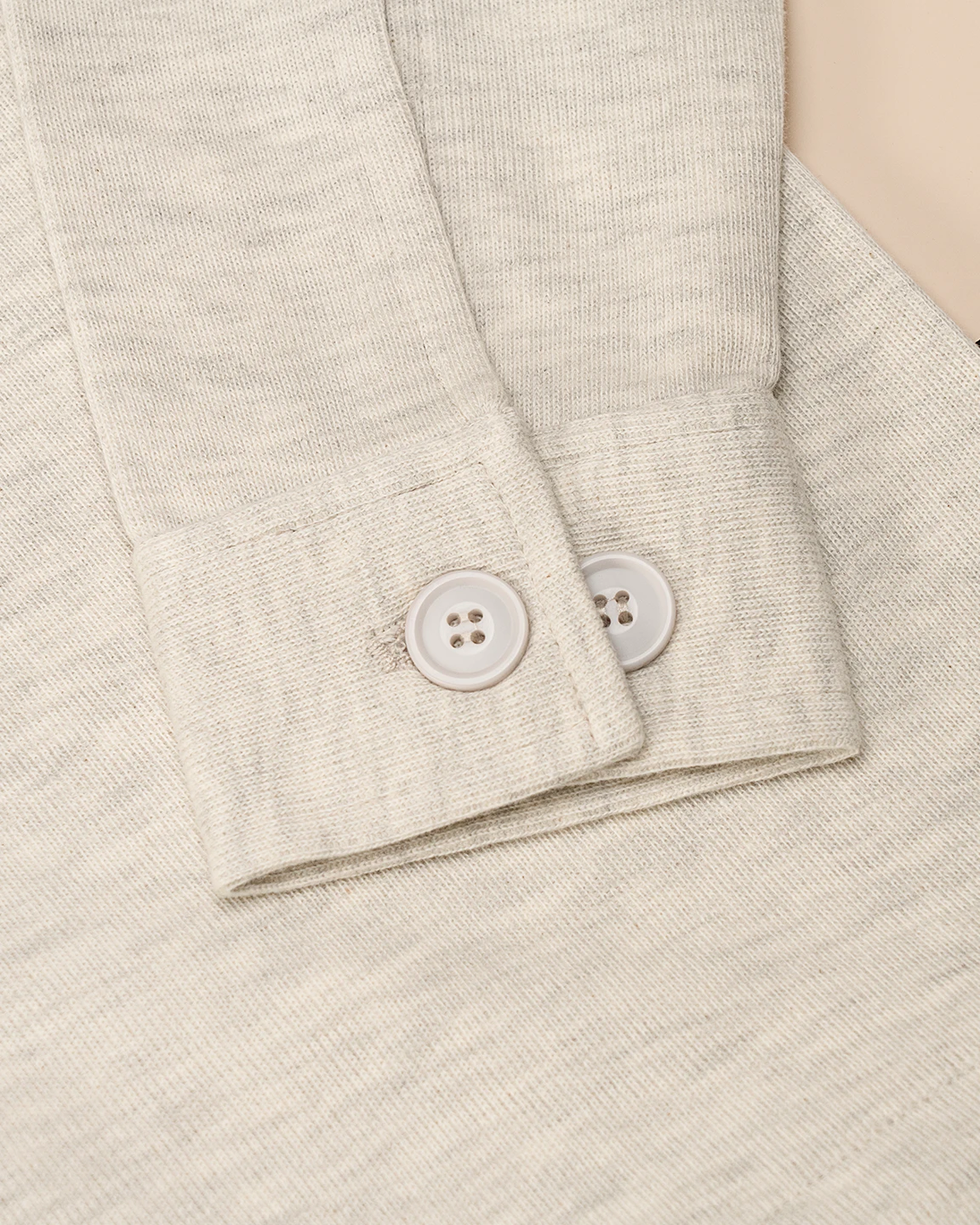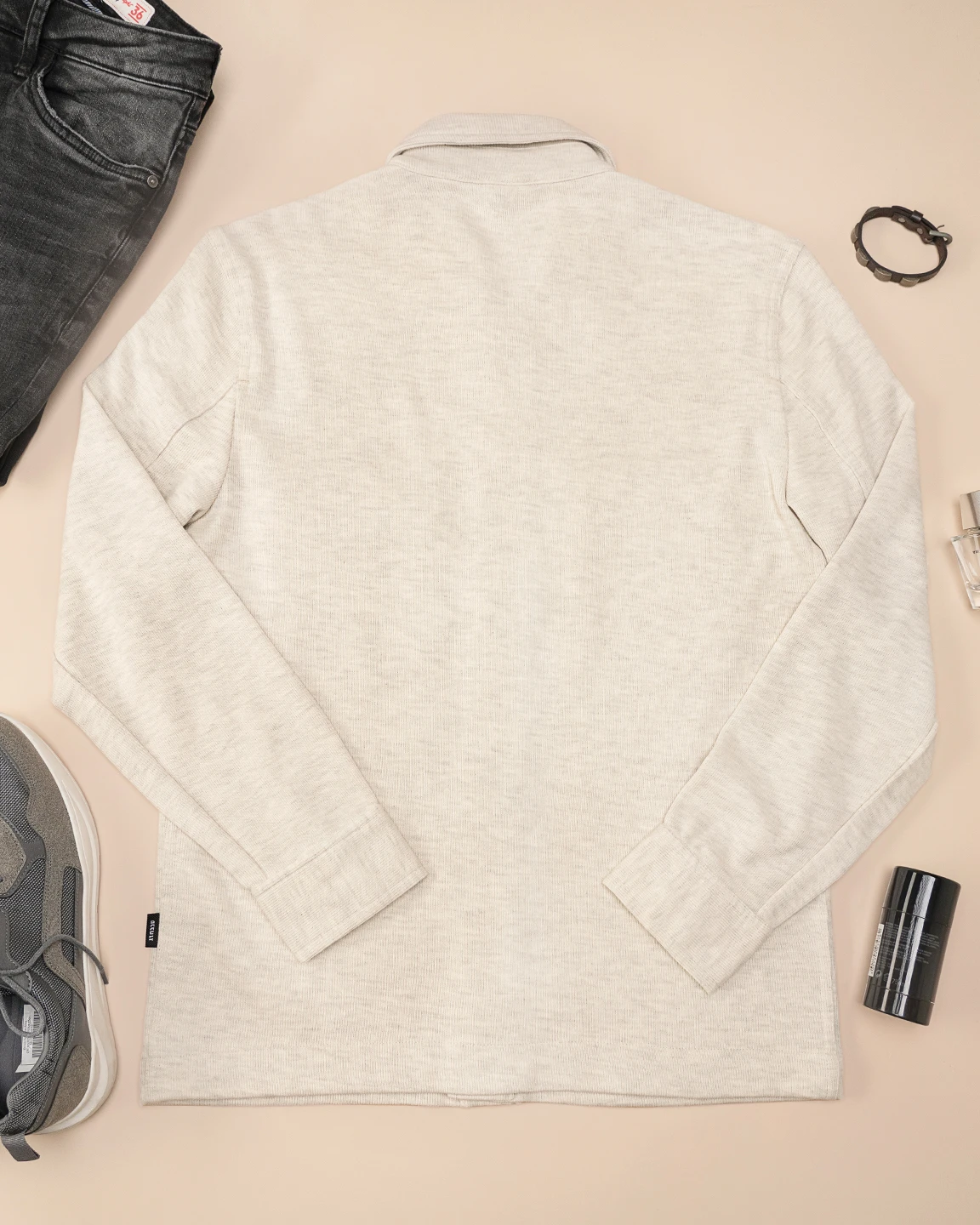 Product Description: Knit Shacket. Jacket & shirt combination . Full sleeve wide collar with cuff and button placket with large size button. Bottom hem is slightly extended .