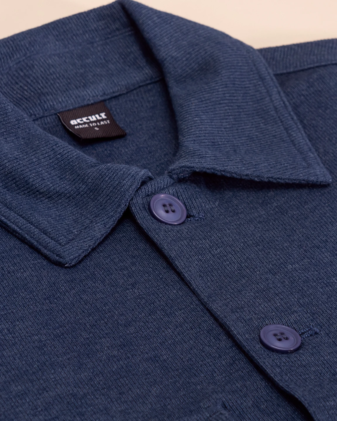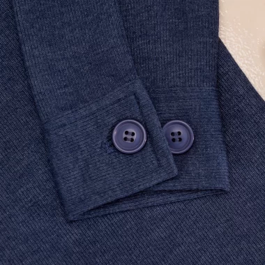 Product Description: Knit Shacket. Jacket & shirt combination . Full sleeve wide collar with cuff and button placket with large size button. Bottom hem is slightly extended .