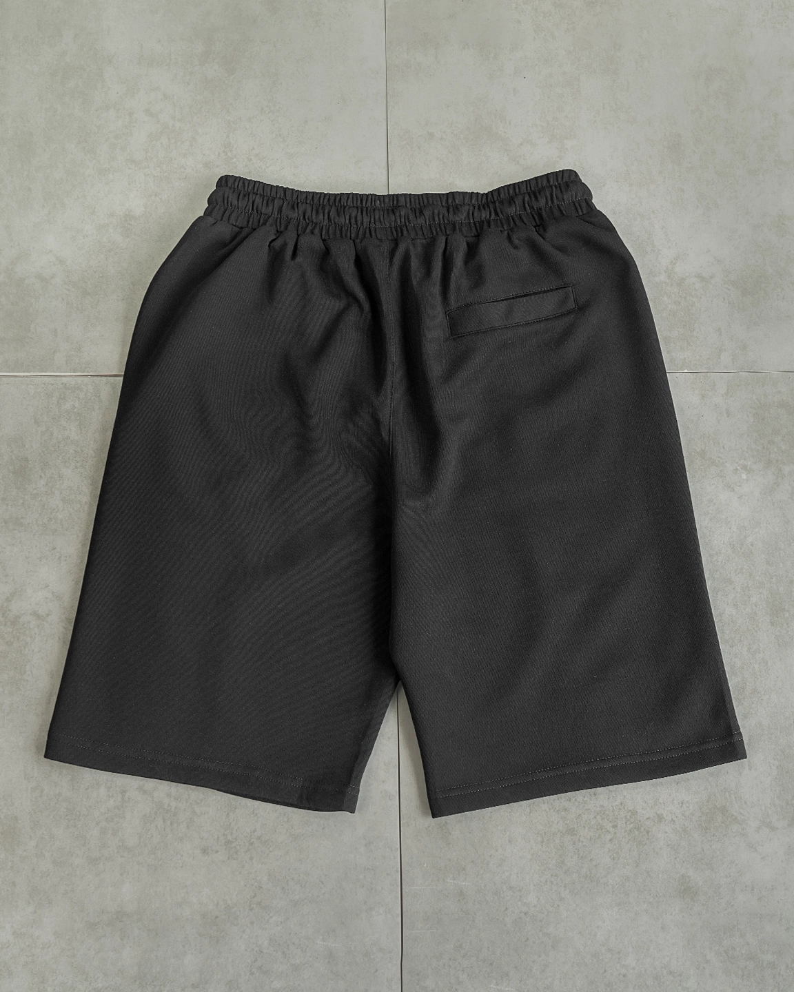 Product Description: Relaxed fit mid-rise Shorts with an elasticated waistband and matching adjustable drawstring. These shorts feature 9″ inseam, two side pockets with a front side logo patch detail and a back pocket.