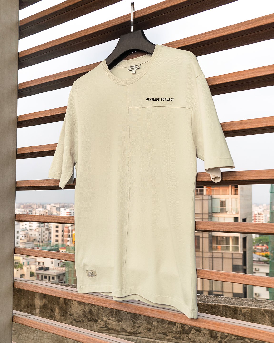 Product description : T-Shirt. Round neck and neck has rib details with DTM twill tape. Short sleeve & Front part cut & sew details with HD print artwork. straight hem.