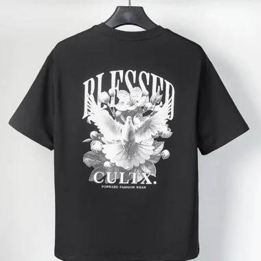Product Description: T-shirt. Round neck with dropped shoulders, half-length sleeves, chest and back print design. Crafted from a premium blend of cotton and polyester, the fabric provides a soft and breathable feel against the skin while ensuring durability and shape retention. The high-quality cotton makes it comfortable to wear throughout the day. The polyester component adds resilience, helping the t-shirt maintain its structure even after multiple washes.