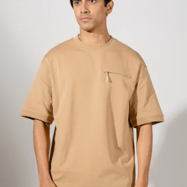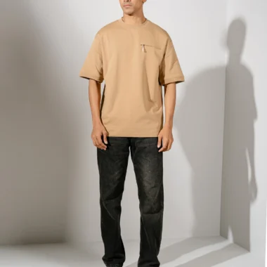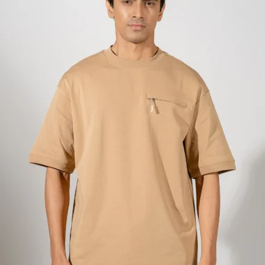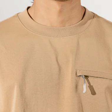 Product Description: T-shirt. Round neck with dropped shoulders, half-length sleeves and zippered pocket detail. Crafted from a premium blend of cotton and polyester, the fabric provides a soft and breathable feel against the skin while ensuring durability and shape retention. The high-quality cotton makes it comfortable to wear throughout the day. The polyester component adds resilience, helping the t-shirt maintain its structure even after multiple washes.