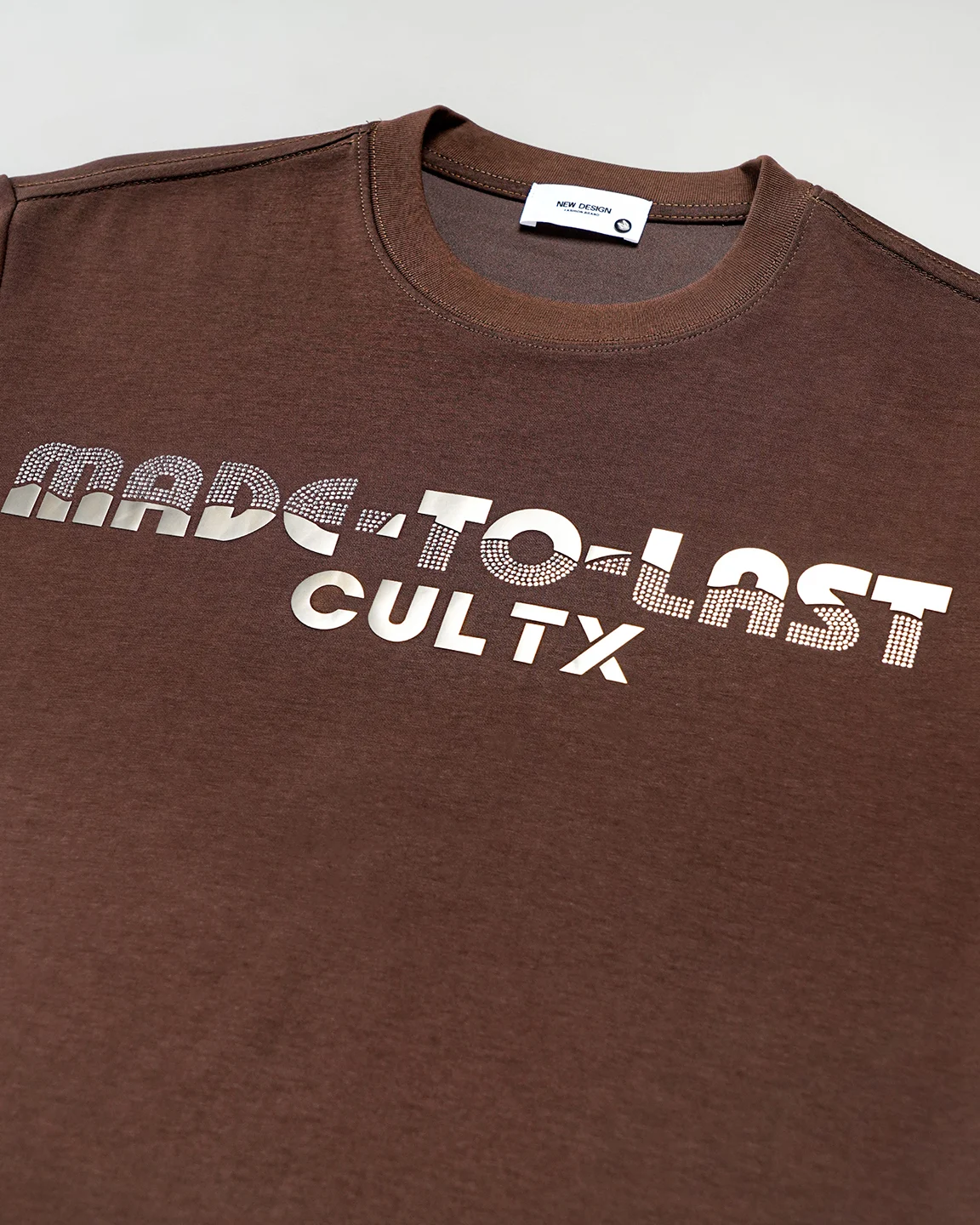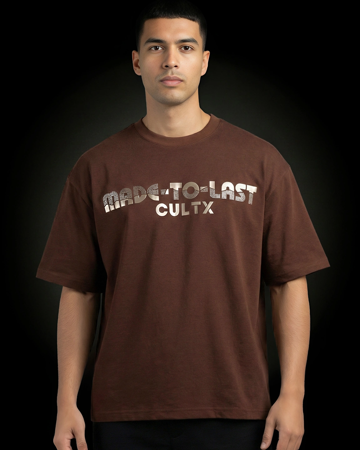 Product Description: T-shirt by Cultx. Round neck with half-length sleeves, featuring rhinestone-style typography detailing on the front. Clean, precise double-needle stitching along the neckline ensures long-lasting strength and a premium look. The inner neck seam is lined with self-binding tape, providing a finished look and enhanced wearer comfort by reducing friction against the skin. Crafted with airtech double-sided fabric.