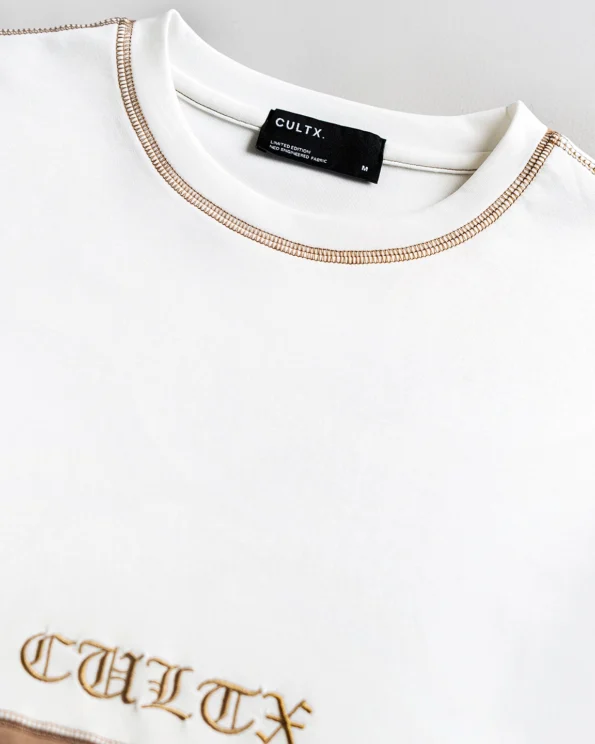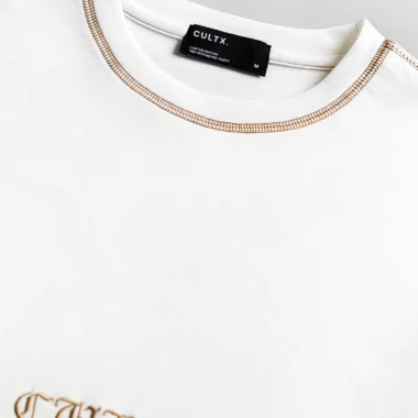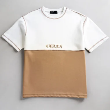 Product Description: T-shirt. Round neck with half-length sleeves, and front embroidery detailing. Clean, precise double-needle stitching along the neckline ensures long-lasting strength and a premium look. The inner neck seam is lined with a self-binding tape, offering a finished look and increased wearer comfort by reducing friction against the skin. Crafted from a premium blend of cotton and polyester, the fabric provides a soft and breathable feel against the skin while ensuring durability and shape retention. The high-quality cotton makes it comfortable to wear throughout the day. The polyester component adds resilience, helping the t-shirt maintain its structure even after multiple washes.