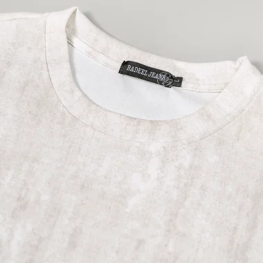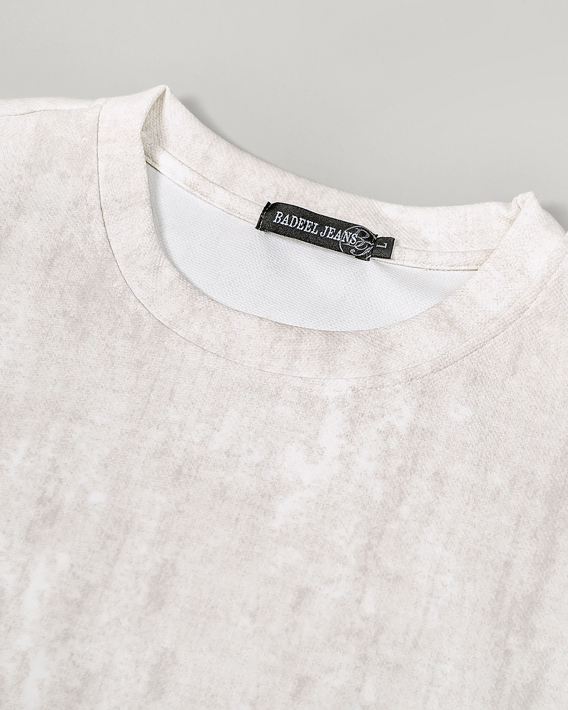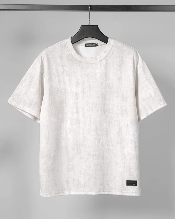 Product Description: T-shirt. Round neck with dropped shoulders and half-length sleeves. Crafted from a premium blend of cotton and polyester, the fabric provides a soft and breathable feel against the skin while ensuring durability and shape retention. The high-quality cotton makes it comfortable to wear throughout the day. The polyester component adds resilience, helping the t-shirt maintain its structure even after multiple washes.