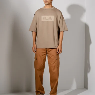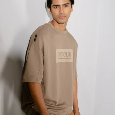 Product Description: T-shirt. Round neck with dropped shoulders, half-length sleeves and chest print design. Crafted from a premium blend of cotton and polyester, the fabric provides a soft and breathable feel against the skin while ensuring durability and shape retention. The high-quality cotton makes it comfortable to wear throughout the day. The polyester component adds resilience, helping the t-shirt maintain its structure even after multiple washes.