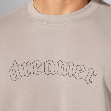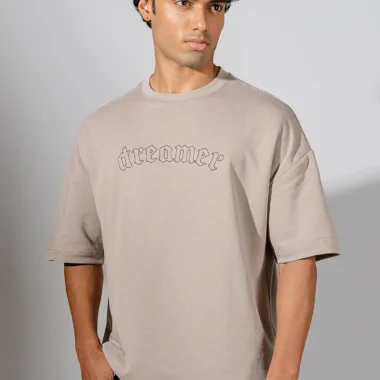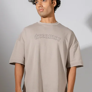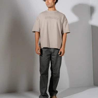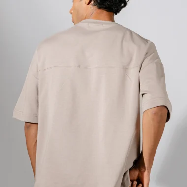 Product Description: T-shirt. Round neck with dropped shoulders, chest embroidery and half-length sleeves. Crafted from a premium blend of cotton and polyester, the fabric provides a soft and breathable feel against the skin while ensuring durability and shape retention. The high-quality cotton makes it comfortable to wear throughout the day. The polyester component adds resilience, helping the t-shirt maintain its structure even after multiple washes.