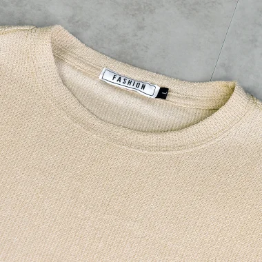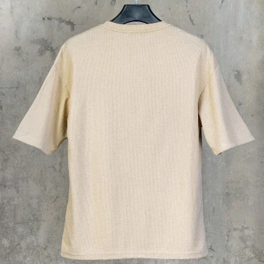 Product Description: T-shirt. Round neck with dropped shoulders and half-length sleeves. Crafted from a premium blend of cotton and polyester, the fabric provides a soft and breathable feel against the skin while ensuring durability and shape retention. The high-quality cotton makes it comfortable to wear throughout the day. The polyester component adds resilience, helping the t-shirt maintain its structure even after multiple washes.