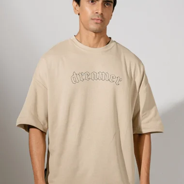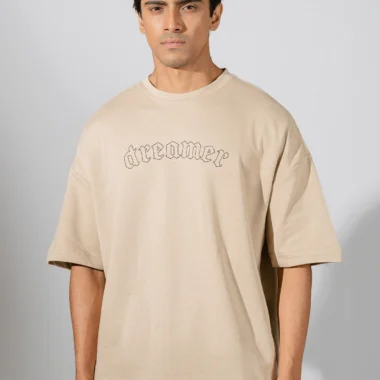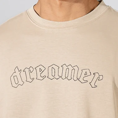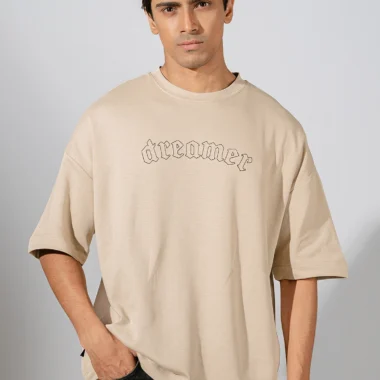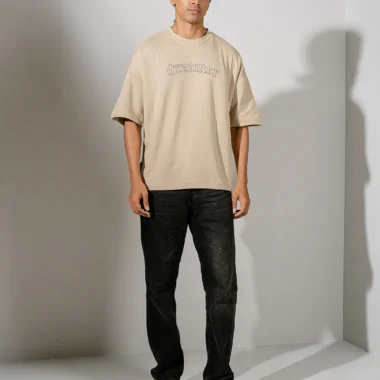 Product Description: T-shirt. Round neck with dropped shoulders, chest embroidery and half-length sleeves. Crafted from a premium blend of cotton and polyester, the fabric provides a soft and breathable feel against the skin while ensuring durability and shape retention. The high-quality cotton makes it comfortable to wear throughout the day. The polyester component adds resilience, helping the t-shirt maintain its structure even after multiple washes.