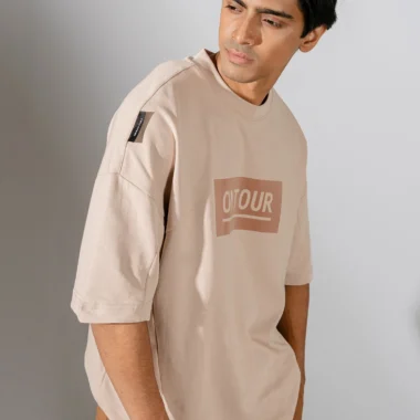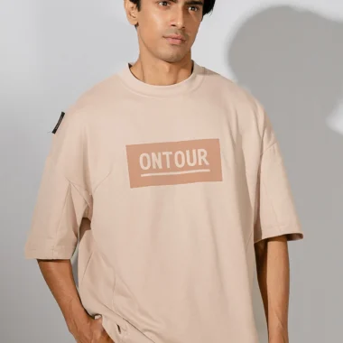 Product Description: T-shirt. Round neck with dropped shoulders, half-length sleeves and chest print design. Crafted from a premium blend of cotton and polyester, the fabric provides a soft and breathable feel against the skin while ensuring durability and shape retention. The high-quality cotton makes it comfortable to wear throughout the day. The polyester component adds resilience, helping the t-shirt maintain its structure even after multiple washes.
