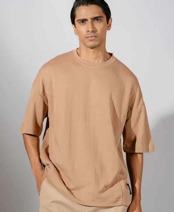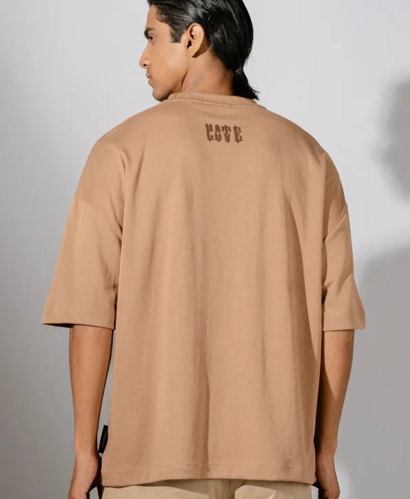 Product Description: T-shirt. Round neck with dropped shoulders, half-length sleeves and high density print at the upper back. Crafted from a premium blend of cotton and polyester, the fabric provides a soft and breathable feel against the skin while ensuring durability and shape retention. The high-quality cotton makes it comfortable to wear throughout the day. The polyester component adds resilience, helping the t-shirt maintain its structure even after multiple washes.