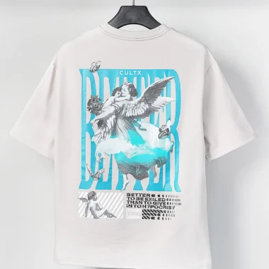 Product Description: T-shirt. Round neck with dropped shoulders, half-length sleeves, chest and back print design. Crafted from a premium blend of cotton and polyester, the fabric provides a soft and breathable feel against the skin while ensuring durability and shape retention. The high-quality cotton makes it comfortable to wear throughout the day. The polyester component adds resilience, helping the t-shirt maintain its structure even after multiple washes.