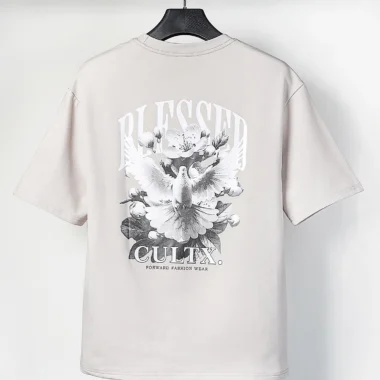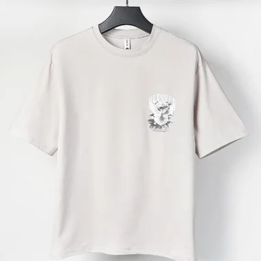 Product Description: T-shirt. Round neck with dropped shoulders, half-length sleeves, chest and back print design. Crafted from a premium blend of cotton and polyester, the fabric provides a soft and breathable feel against the skin while ensuring durability and shape retention. The high-quality cotton makes it comfortable to wear throughout the day. The polyester component adds resilience, helping the t-shirt maintain its structure even after multiple washes.