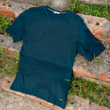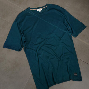 Product description : Drop shoulder T-shirt in round neck and rib details with DTM twill tape. Short sleeve with bottom patch details. Straight hem.