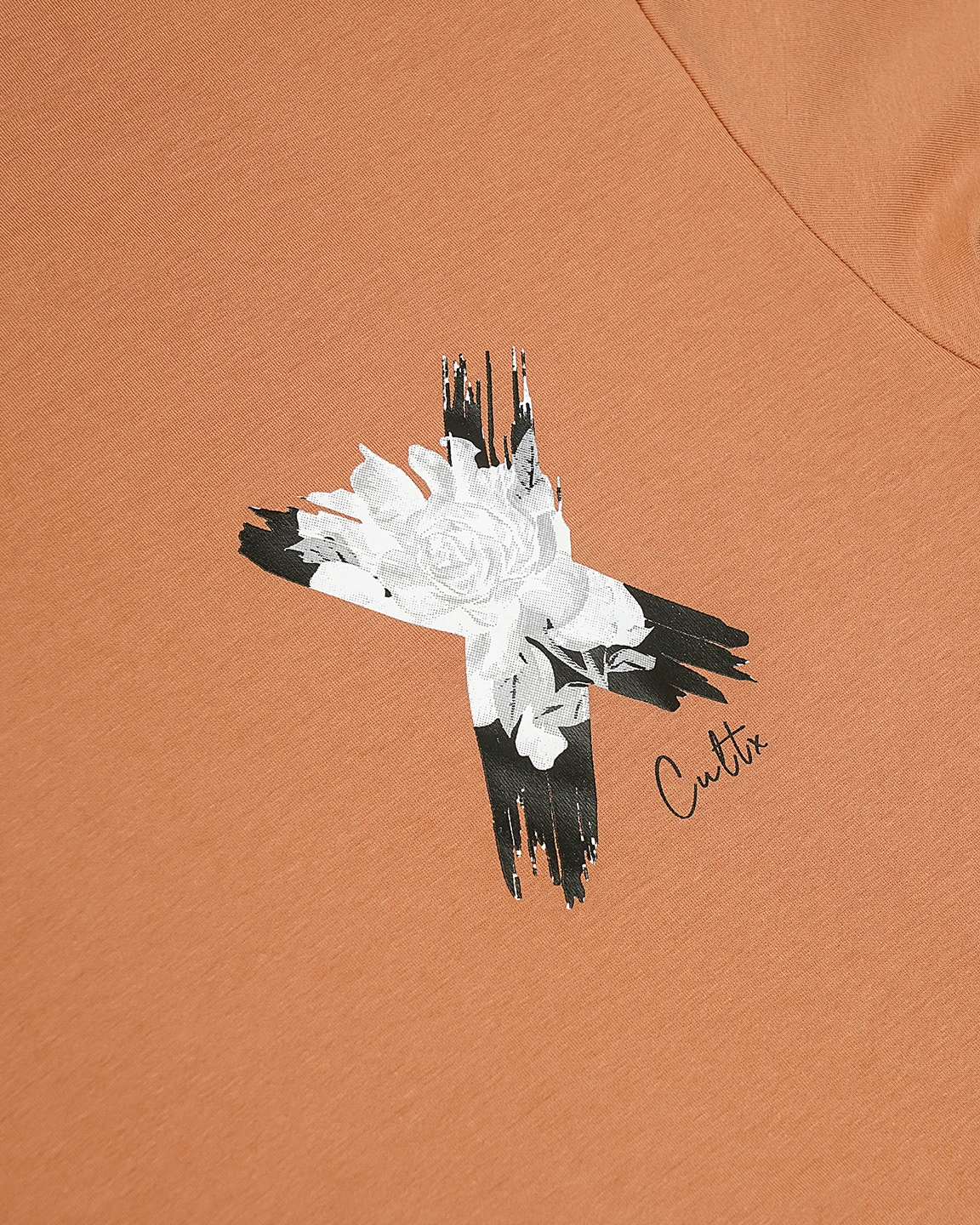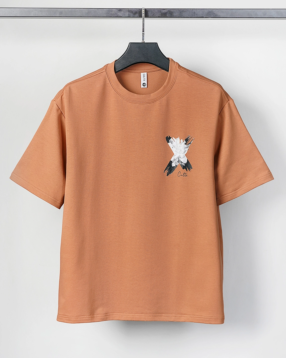 Product Description: T-shirt. Round neck with dropped shoulders, half-length sleeves, chest and back print design. Crafted from a premium blend of cotton and polyester, the fabric provides a soft and breathable feel against the skin while ensuring durability and shape retention. The high-quality cotton makes it comfortable to wear throughout the day. The polyester component adds resilience, helping the t-shirt maintain its structure even after multiple washes.