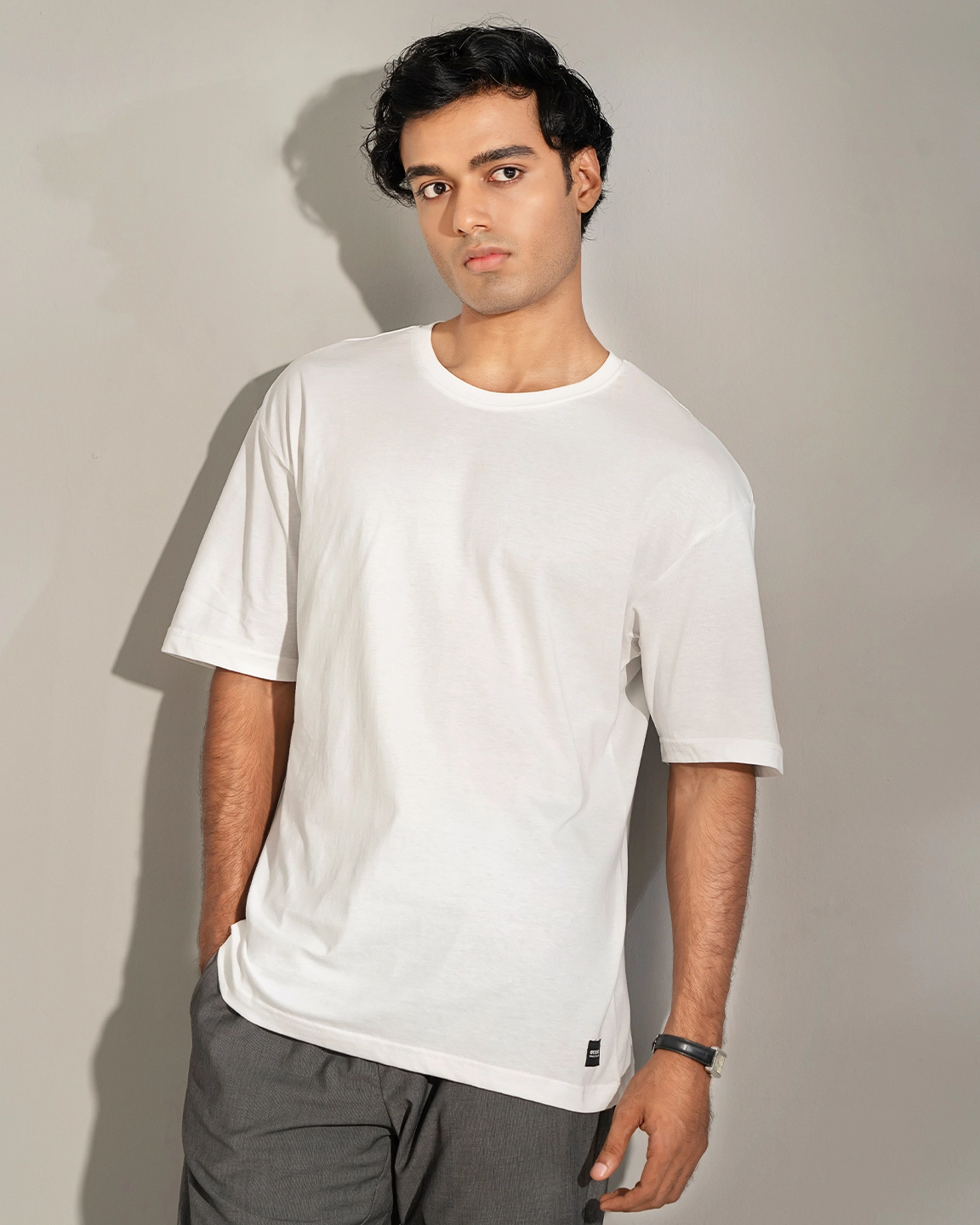 Product description : Drop shoulder T-shirt in round neck and rib details with DTM twill tape. Short sleeve with bottom patch details. Straight hem.