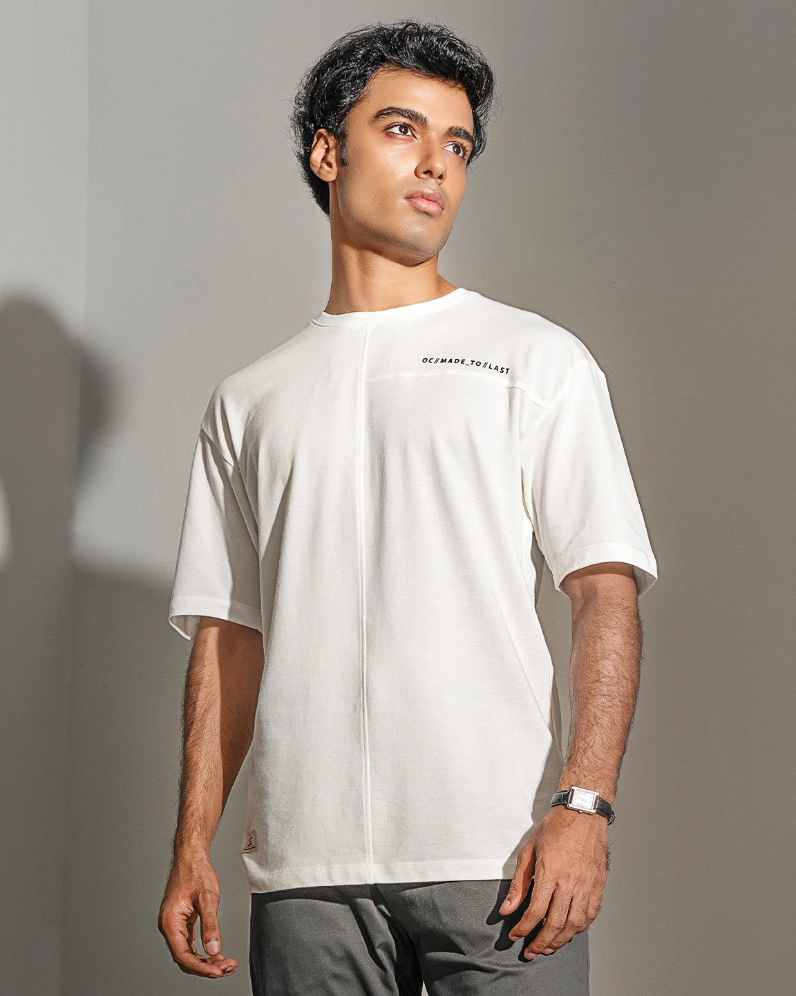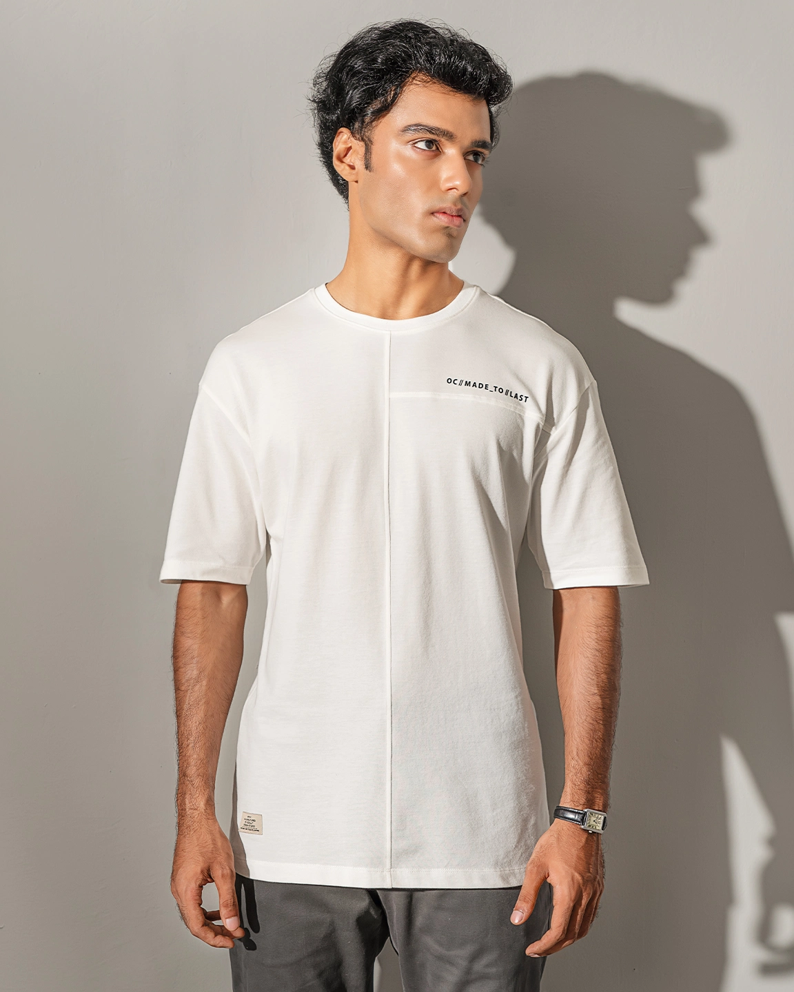 Product description : T-Shirt. Round neck and neck has rib details with DTM twill tape. Short sleeve & Front part cut & sew details with HD print artwork. straight hem.