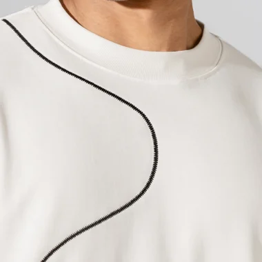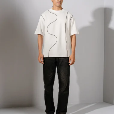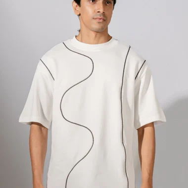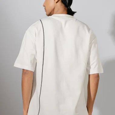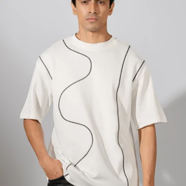 Product Description: T-shirt. Round neck with dropped shoulders, half-length sleeves and contrast stitch design. Crafted from a premium blend of cotton and polyester, the fabric provides a soft and breathable feel against the skin while ensuring durability and shape retention. The high-quality cotton makes it comfortable to wear throughout the day. The polyester component adds resilience, helping the t-shirt maintain its structure even after multiple washes.