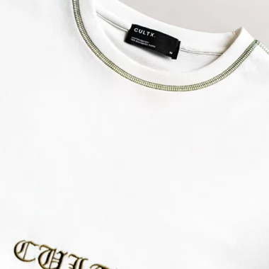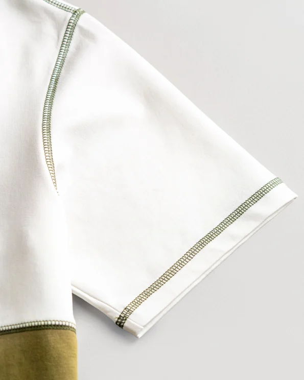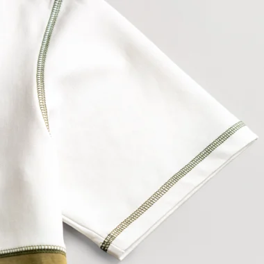 Product Description: T-shirt. Round neck with half-length sleeves, and front embroidery detailing. Clean, precise double-needle stitching along the neckline ensures long-lasting strength and a premium look. The inner neck seam is lined with a self-binding tape, offering a finished look and increased wearer comfort by reducing friction against the skin. Crafted from a premium blend of cotton and polyester, the fabric provides a soft and breathable feel against the skin while ensuring durability and shape retention. The high-quality cotton makes it comfortable to wear throughout the day. The polyester component adds resilience, helping the t-shirt maintain its structure even after multiple washes.