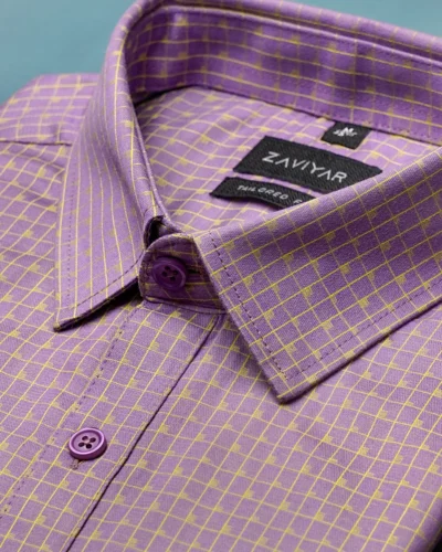 Giza cotton tie collar tailored fit woven formal shirt | Lavender
