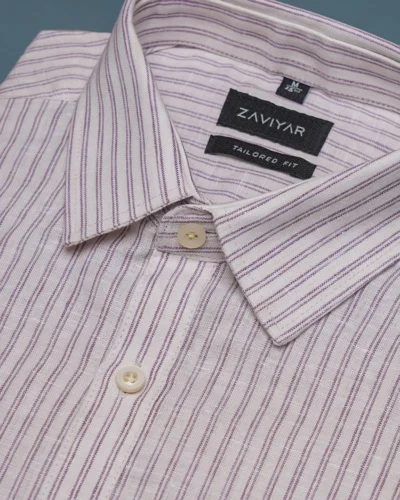 Luxury linen tie collar tailored fit woven formal shirt | Plum