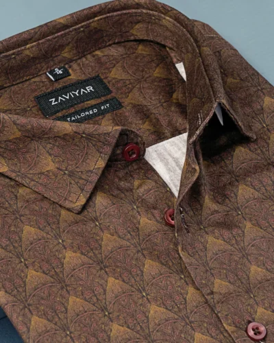 Printed cotton tie collar tailored fit woven shirt | Pecan