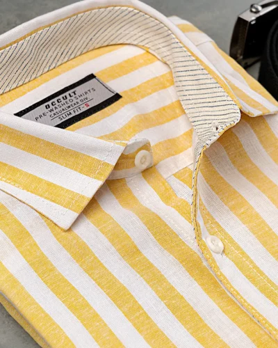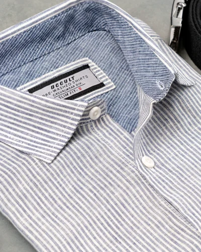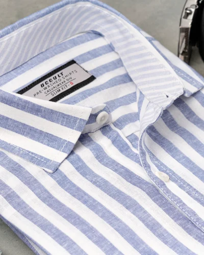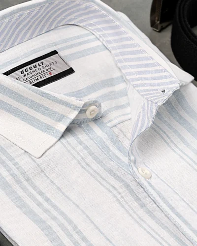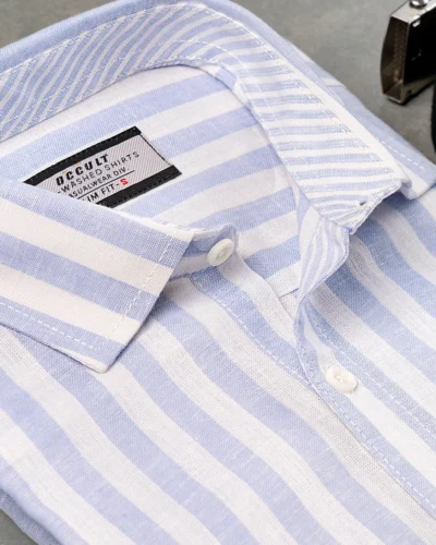 Luxury linen slim fit woven striped shirt | Sky Blue