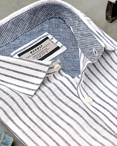 Luxury Linen slim fit woven striped shirt | Navy Blue