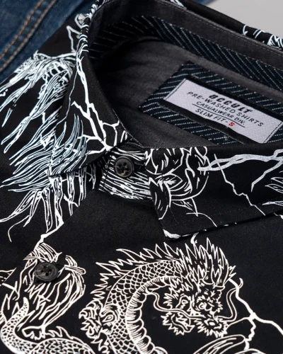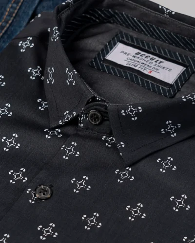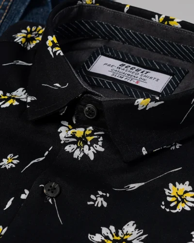 Cotton slim fit woven shirt | Ink Black Tk. 1,880