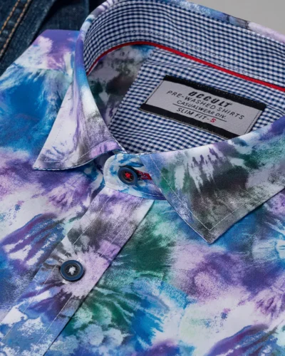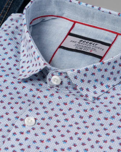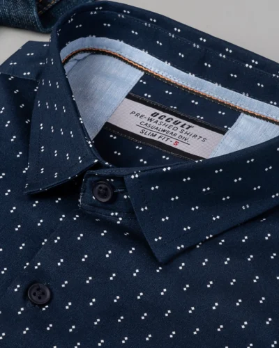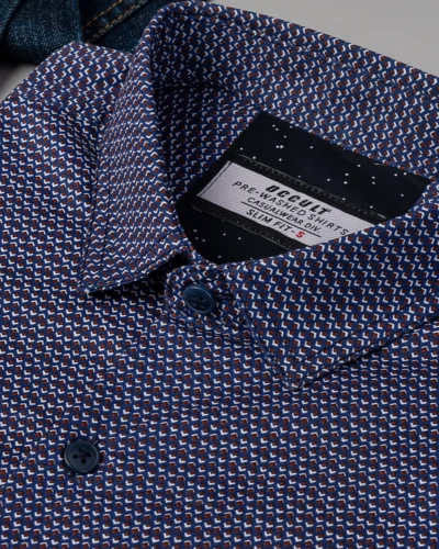 Cotton slim fit woven printed shirt | Blue Sapphire