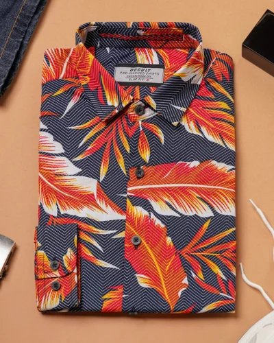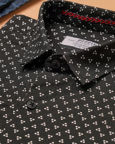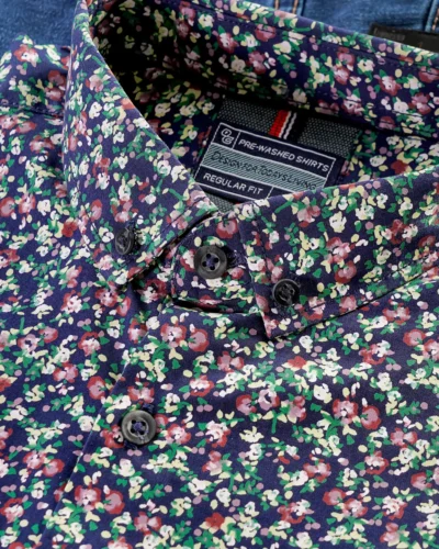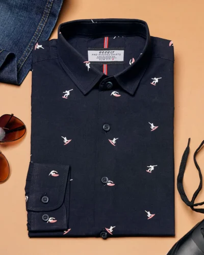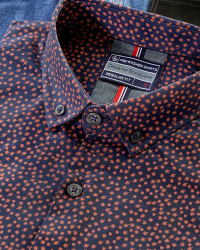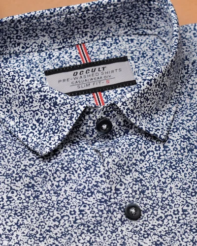 Cotton narrow collar regular fit woven printed shirt | Navy Blue