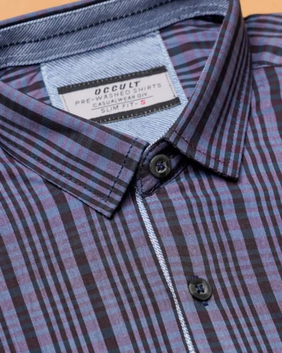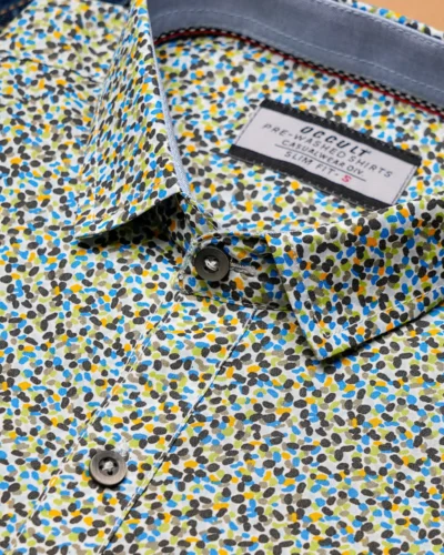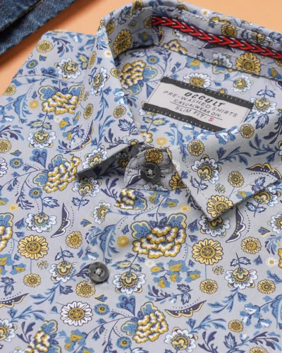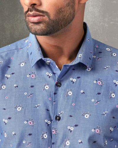 Cotton narrow collar regular fit woven printed shirt | Steel Blue