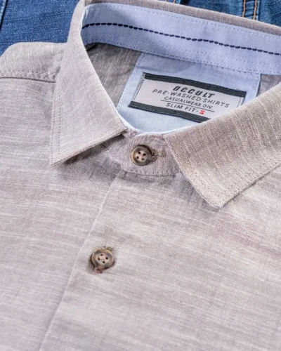 Cotton Narrow collar Slim fit woven print shirt | Steel gray