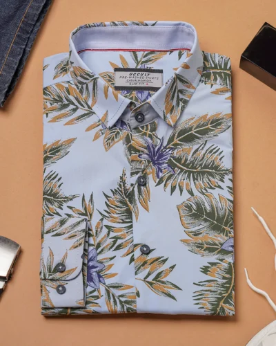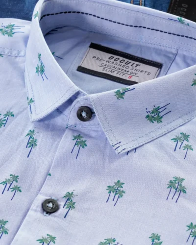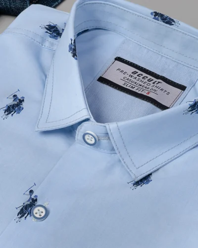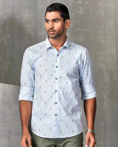 Cotton narrow collar regular fit woven printed shirt | Baby Blue