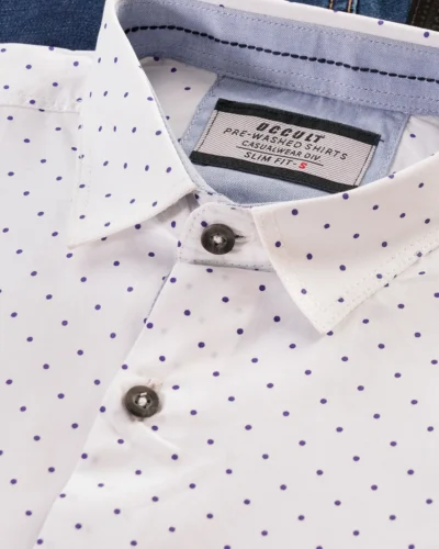 Cotton Shallow collar Slim fit woven print shirt | Dusk blue