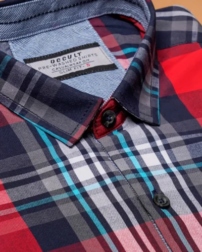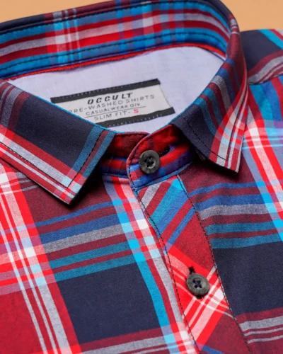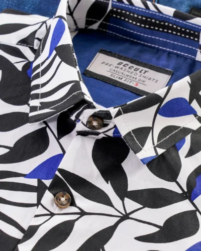 Cotton narrow collar regular fit woven printed shirt | Royal Blue
