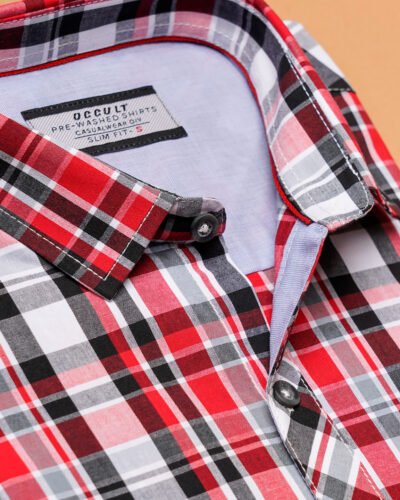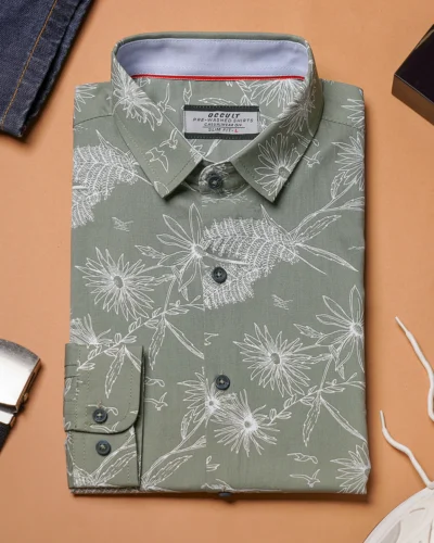 Cotton Narrow collar slim fit woven printed shirt | Olive