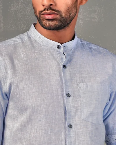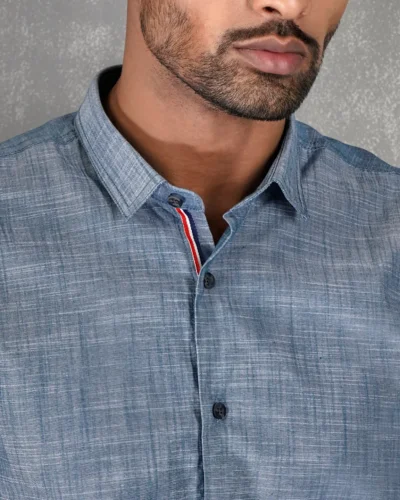 Cotton Narrow collar slim fit woven printed shirt | Celestial Blue