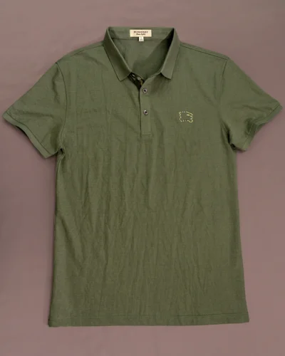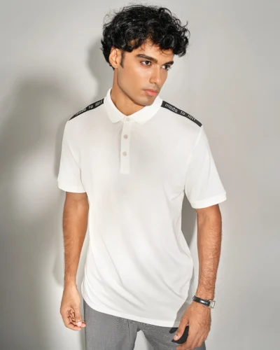 Product Description : Knit Polo. Short sleeve rib cuff, Shoulder line has a decorative twill tape design and button placket on rib. On chest has a patch details, half moon back yoke, straight hem, DTM Button.