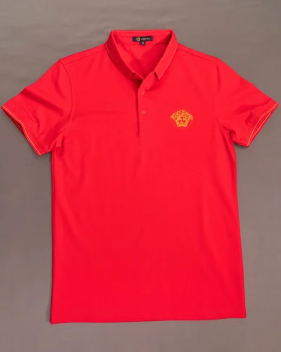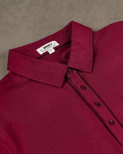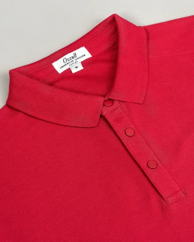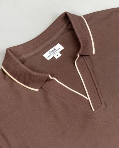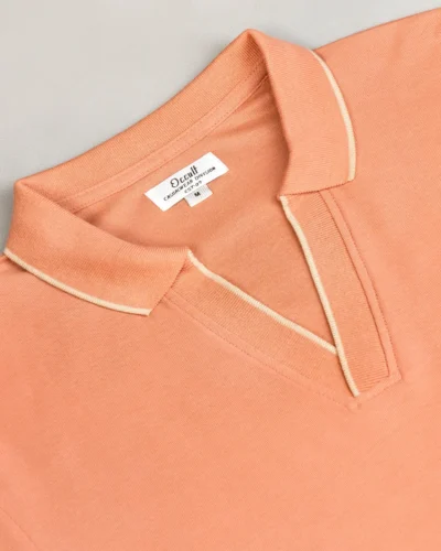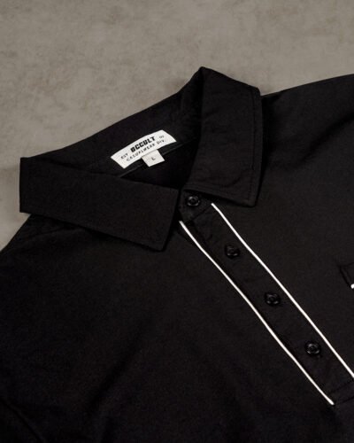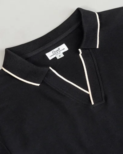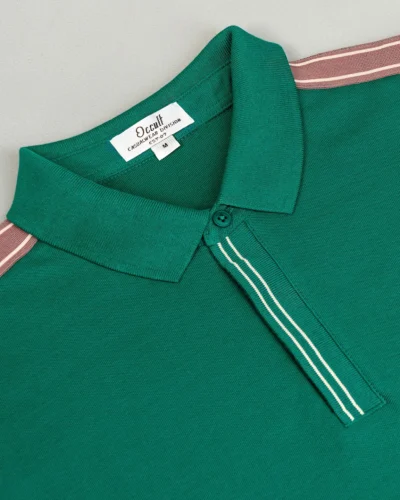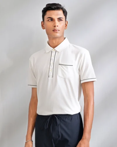 Product Description: Knit Polo. Short sleeve cuff with contrast piping. Button placket with contrast piping neck twill tape. Chest pocket with contrast piping. bottom patch details, straight hem, DTM Button.